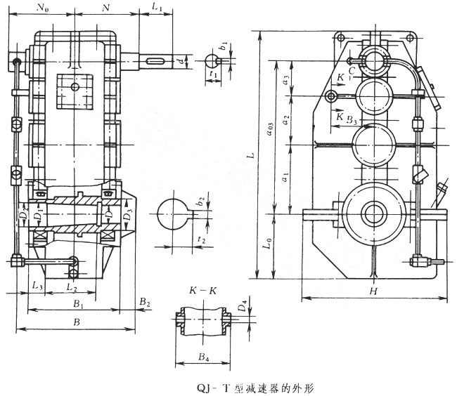 QJ-T型減速器的外形尺寸及安裝尺寸 (mm)