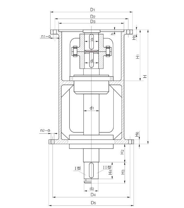 機架型號 減速機 D1 D2 D3 n1-φ D4 D5 n2-φ d d1 d2 h H H1 H2 H3 H4 H5 H6