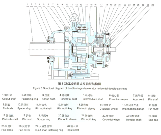 3.結構緊湊,體積小,重量輕。體積和普通圓柱齒輪減速機相比可減小2/1–2/3。